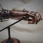 Steampunk Battle Damaged Robotic Wooden Android Hand Relic W/Table Top Display Right Hand Brass Collar