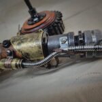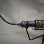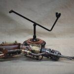 Also includes a 8″ tall display stand made from an old metal gear and wood. Base is 5″ in diameter.