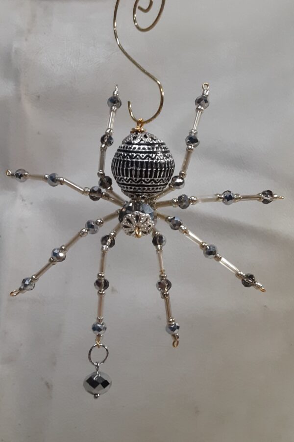 Christmas Silver and Black Beaded Spider