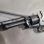 The original featured 9- .42 or .36 caliber cap and ball black powder chambers and an additional 20 gauge smooth bore barrel capable of shooting buckshot.