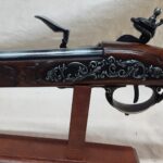 Wood engraving on stock and decorative metal work on the firing mechanism.