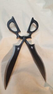 Constructed from steel the sword display is made from a 1.25 x 3/16″ bar.