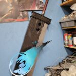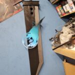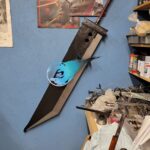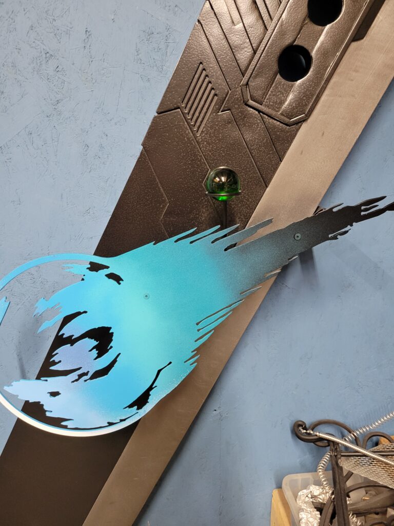 It is approximately 48″ long x 11″ wide with the FFVII meteor logo mounted on the front and held in place by 2 screws. A spare materia holder is also mounted just above the logo. Still tweaking a few of the dimensional aspects.
