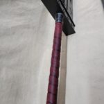 The handle, which is welded securely into the blade and re-enforced with a steel insert, is wrapped in a spiral pattern with genuine red leather. The handle diameter is 1-1/8″ and is is approx. 18.5″ (45 cm)long. Pommel and lower hand guard details may vary slightly from photos.