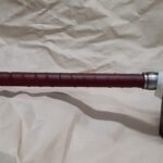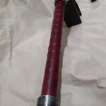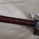The handle, which is welded securely into the blade and re-enforced with a steel insert, is wrapped in a spiral pattern with genuine leather, usually burgundy or red. The handle diameter is 1-1/8″.