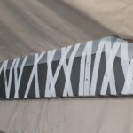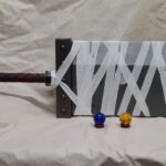 This is a custom reproduction of Cloud Strife’s Buster Sword from the Kingdom Hearts game series. Constructed primarily from Aluminum the sword is cut from 1/8″ sheet, welded together with internal bracing, filled with foam to help prevent internal rattling, then ground and sanded to a smooth finish with textured painting added to finish the product.
