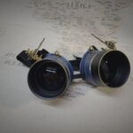 -Black distressed aluminum extension rings are also attached to each eyepiece.