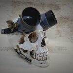 -Aged stamped zinc-plated brass metal dragon wings are mounted to the sides of the eyecups with brass knurled nuts.