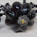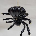 This is a very large handmade beaded black ceramic drawer pull spider.
