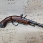 This is an aged version of a left handed 18th century Indian flintlock pistol.