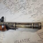 It weighs approximately 1.5 lbs. and is 14.5″ long with an aged pewter and brass or aged pewter finish.