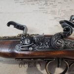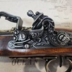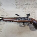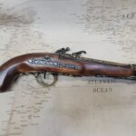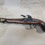 This is an aged version of a left handed pirate’s flintlock blunderbuss pistol.