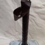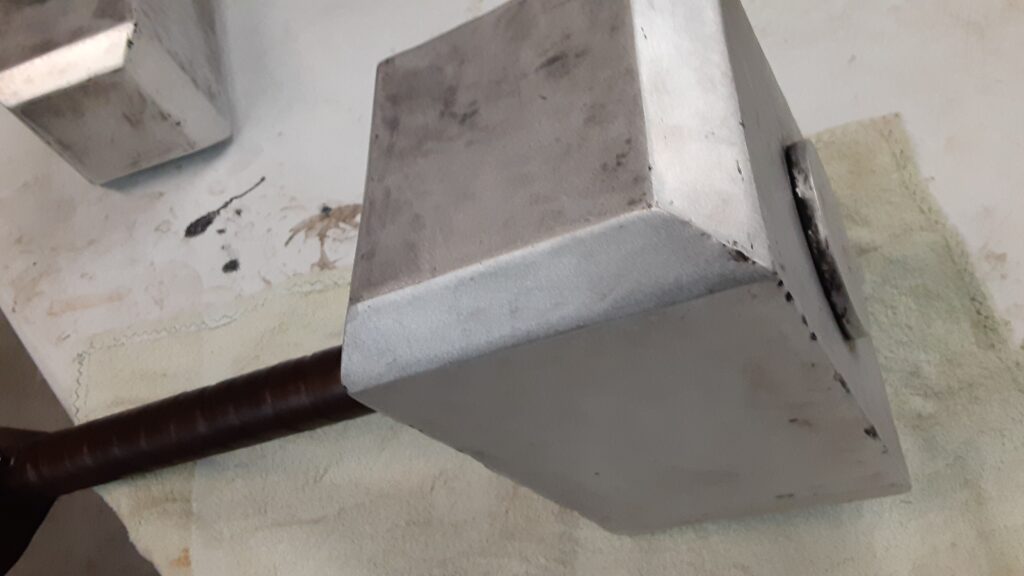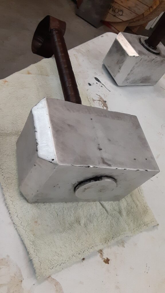 Leather wrapping is usually in brown but can be done in most any other color upon request. It weighs approximately 13 lbs. and has a 5″ wide x 5.25″ tall x 11 ” long head made from 11 gauge steel.