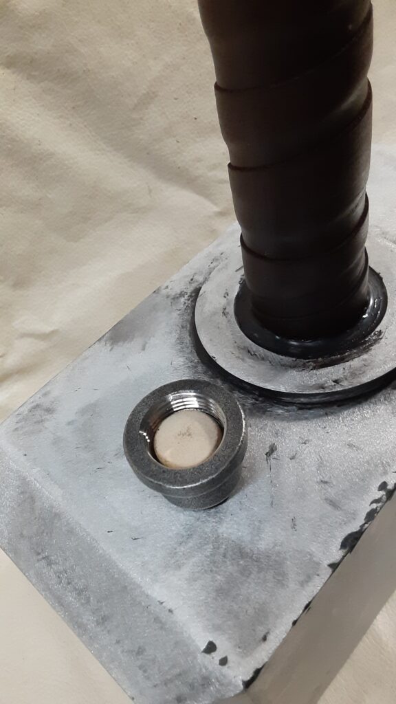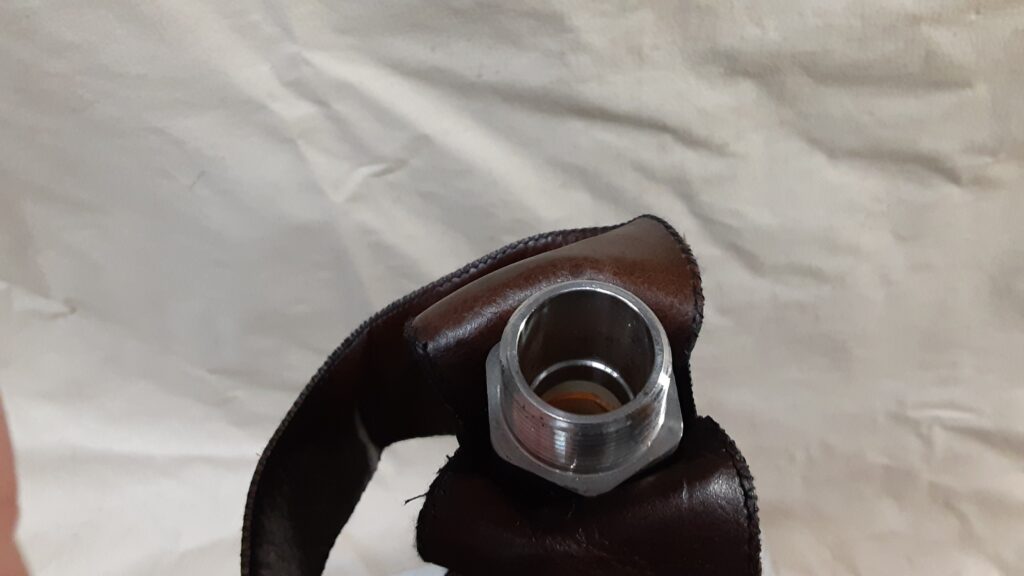 The hammer has a PVC capsule in the head with a PVC seal-able pouring spout mounted in the handle with either a brass or stainless steel cap.