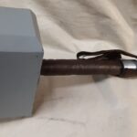 The leather spiral wrapping is a dark brown with the grasping thong wrapped beneath the spiral the entire length of the handle. It weighs approximately 12.5 lbs. and has a 5″ wide x 5″ tall x 9.5 ” long head made from 11 gauge steel.