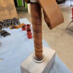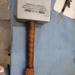 Leather wrapping is usually in brown but can be done in most any other color upon request. It weighs approximately 13 lbs. and has a 5″ wide x 5.25″ tall x 11 ” long head made from 11 gauge steel.