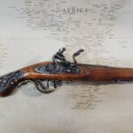 Butt of the gun has pewter filigree on the right side.