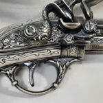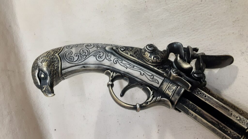 Right Handed Steampunk Style 18th Century Aged Faux Ivory (Polycarbonate) Three x Eagle’s Head Non-Firing Flintlock
