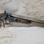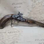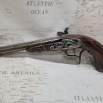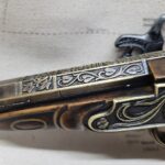 This is an aged version of an 18th century Pirate’s flintlock pistol.