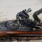 Trigger and flintlock work on pistol.