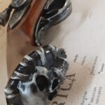 It weighs approximately 1.5 lbs. and is 15″ long with an aged pewter and brass finish.