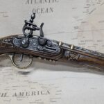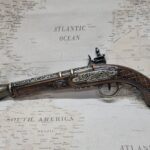 This is an aged version of an 18th century Pirate’s flintlock pistol.