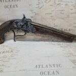 This is an aged version of an 18th century Pirate’s flintlock pistol.