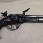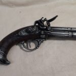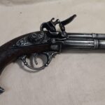 This is an aged version of an 18th century 3 barrel flintlock pistol.