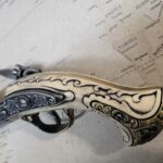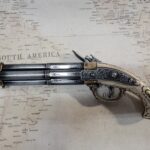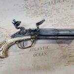 This is an aged version of an 18th century aged 4 barrel faux Ivory flintlock pistol.