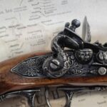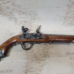 This is an aged version of a pirate’s flintlock blunderbuss pistol.
