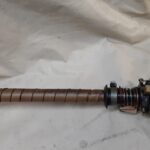 Leather handle wrapping is a brown spiral pattern.
