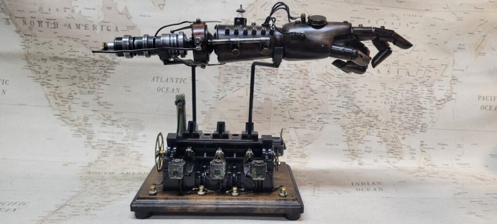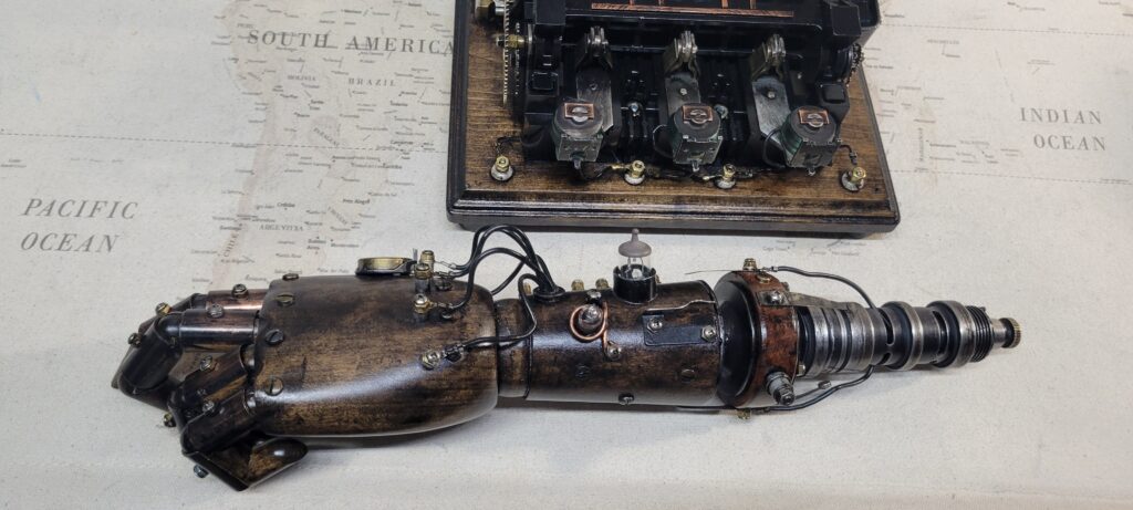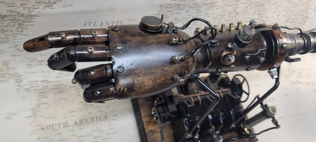 This is a Steampunk Battle Damaged Robotic hand relic.