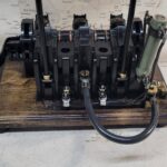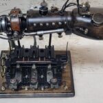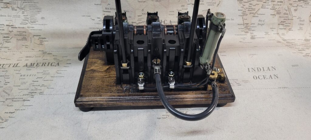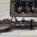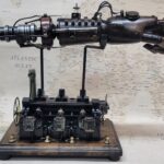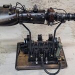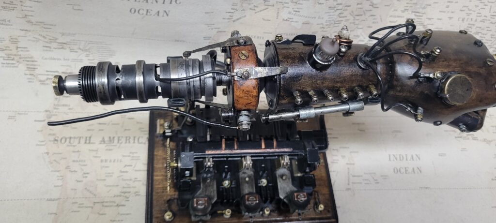 Various findings, a vacuum tube, copper, brass, and steel items have been added to create a Steampunk feel.