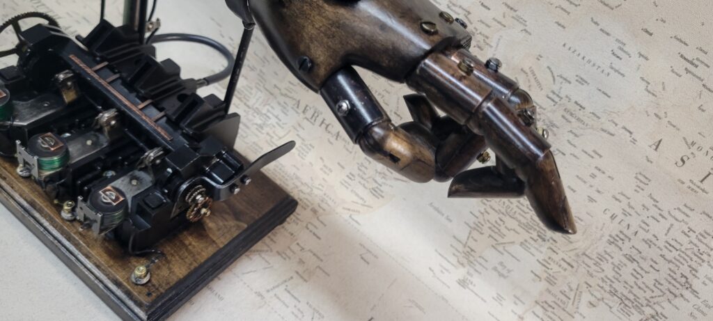 Steampunk Battle Damaged Robotic Wooden Android Hand Relic W/Tabletop Display Left Hand
