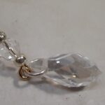 A small crystal teardrop shaped bead is suspended from one of the front legs to look as though a drop of dew is falling from the spider’s leg.