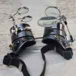 -2 large magnifying (5x each) loupes have been mounted to the right eye cup with a set of 2 (7.5x each) magnifying loupes mounted on the left.