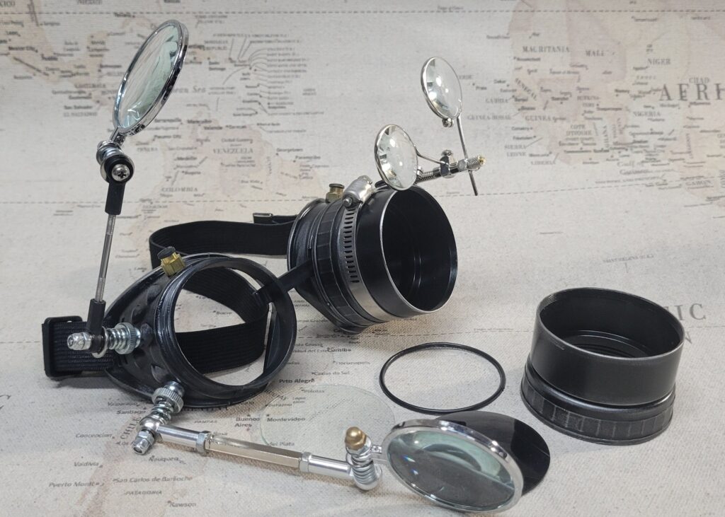 -They include 2-50 mm clear glass lenses, 2-50 mm smoked lenses, and a 3/4″ black elastic headband. – A few other various findings have been added as well.