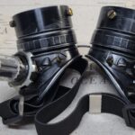 -They include 2-50 mm clear glass lenses, 2-50 mm smoked lenses, and a 3/4″ black elastic headband. -A few other various findings have been added and a vacuum tube to the left eye cup as well.