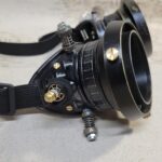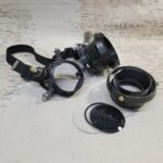 -Double black distressed aluminum extension rings with gold highlights are attached to each eyepiece.