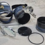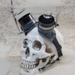 -Black distressed aluminum extension rings are attached to each eyepiece.