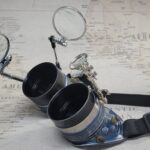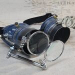 Steampunk Engineer Blue Goggles With Double Loupes and Double Large Magnifying Loupes