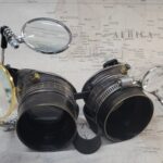 Steampunk Engineer Brown Goggles With Double Loupes and Double Large Magnifying Loupes