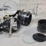 -2 large magnifying (5x each) loupes have been mounted to the right eye cup with a set of 2 (7.5x each) magnifying loupes mounted on the left.
