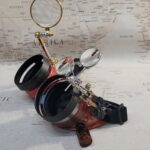 Steampunk Engineer Red Goggles With Double Loupes and a Large Magnifying Loupe