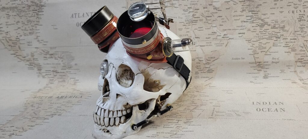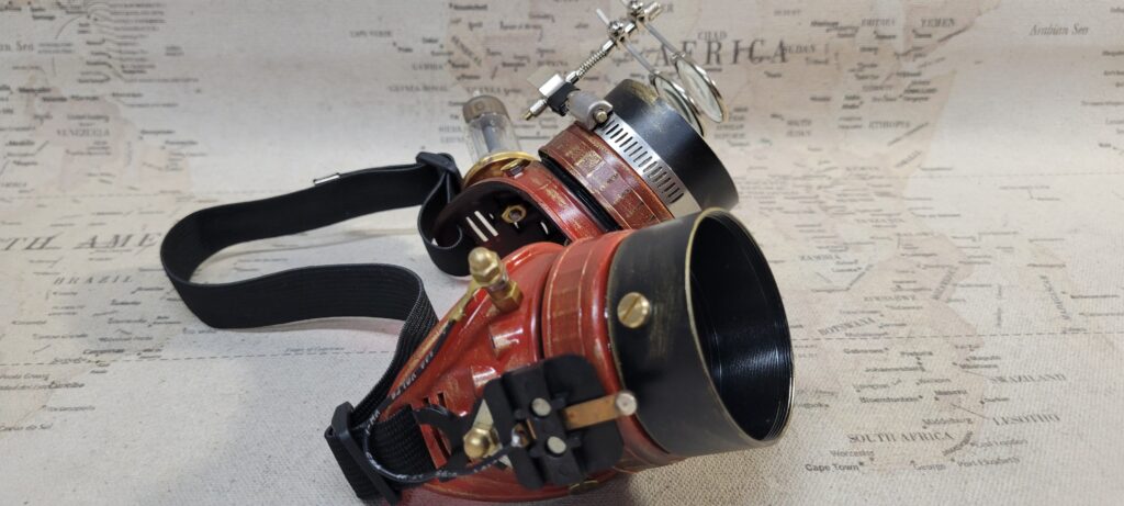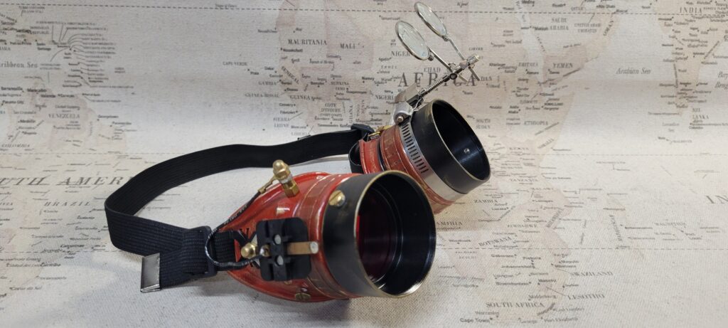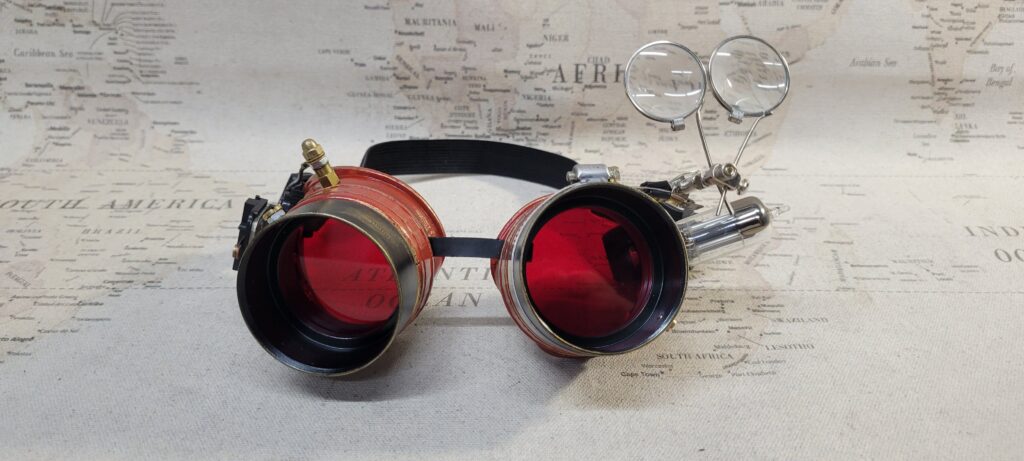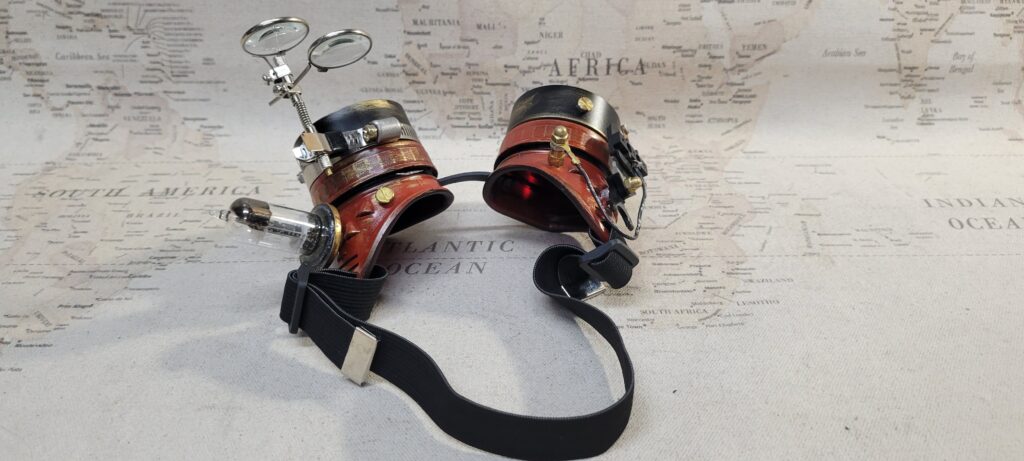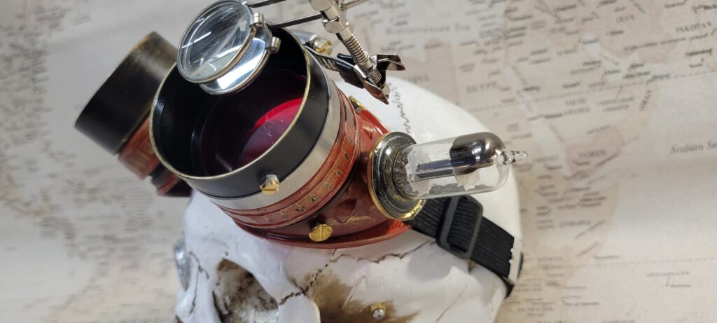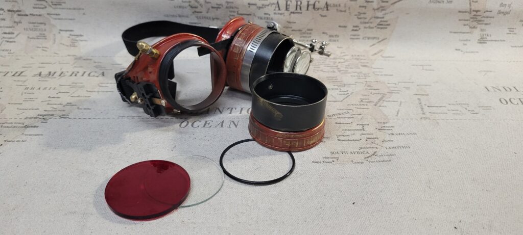 -They include 2-50 mm clear glass lenses, 2-50 mm red lenses, and a 3/4″ black elastic headband.                                                                                                 – A few other various findings have been added as well.