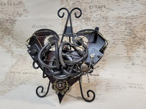 This is a Steampunk Heart sculpture made form various materials.