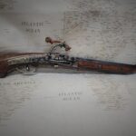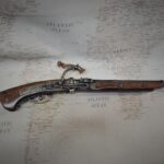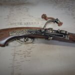 This is an aged version of a non firing Japanese Matchlock pistol introduced by the Portuguese and used from the mid 1500’s to the early 1800’s.