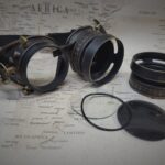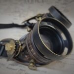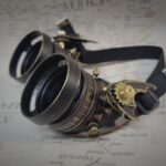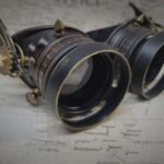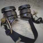 -Distressed black aluminum extension rings with gold highlights are also attached to each eyepiece.