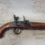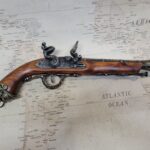 This is an aged version of a pirate’s flintlock blunderbuss pistol.