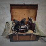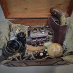 Steampunk Vortex Manipulator Journeyman’s Kit w/ Large Brown Wooden Storage Box and Embossed Brown Leather Arm Strap Ready to Ship